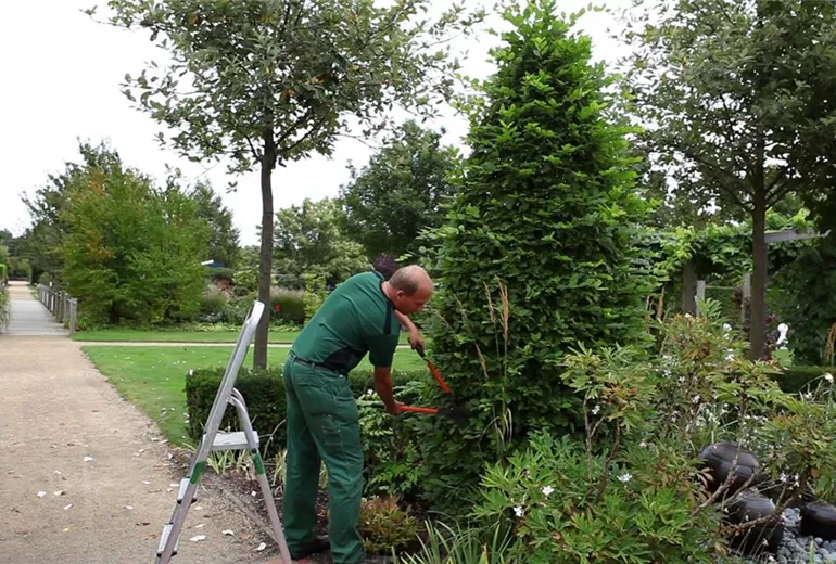 Beim Schneiden der Säulenhainbuche ist darauf zu achten, dass sie nach oben schmaler verläuft und entsprechend beschnitten wird.