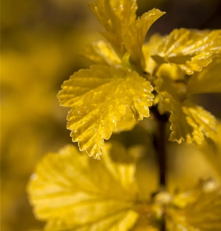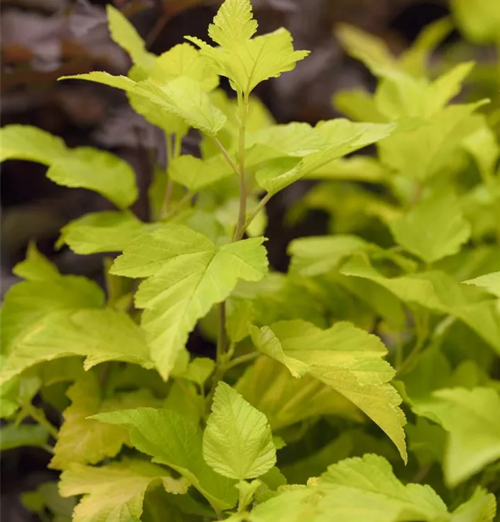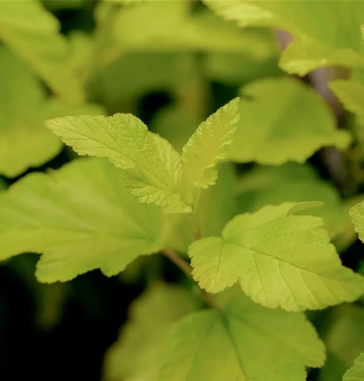 Hoher Blattschmuckwert. Die sommergrünen Blätter der Fasanenspiere 'Dart´s Gold' sind grüngelb, eiförmig, wechselständig, gelappt. Diese sind etwa 5 - 10 cm groß. Fasanenspiere 'Dart´s Gold' zeigt sich leuchtend bernsteingelb im Herbst.