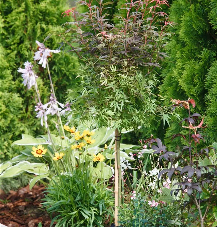 In die Art Acer palmatum reihen sich zahlreiche Sorten, die mit strauchartigen Wuchshöhen oder ungewöhnlichen Blattfärbungen locken.