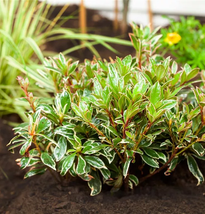 Pieris japonica 'Little Heath' ist ein Flachwurzler und bildet, je nach Boden, fein verzweigte Wurzeln.