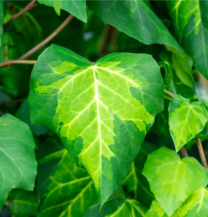 Der Strauch-Efeu 'Sulphur Heart' weist eine gute Frosthärte auf.