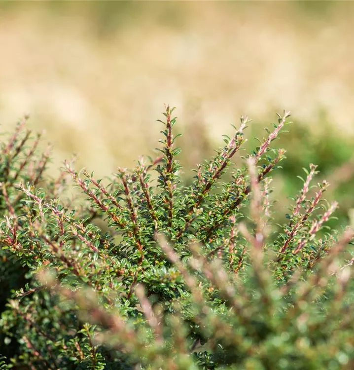 Besonders dekorativ sind die roten, runden Beeren von Cotoneaster dammeri 'Juliette'. Diese erscheinen ab August.