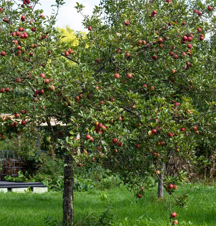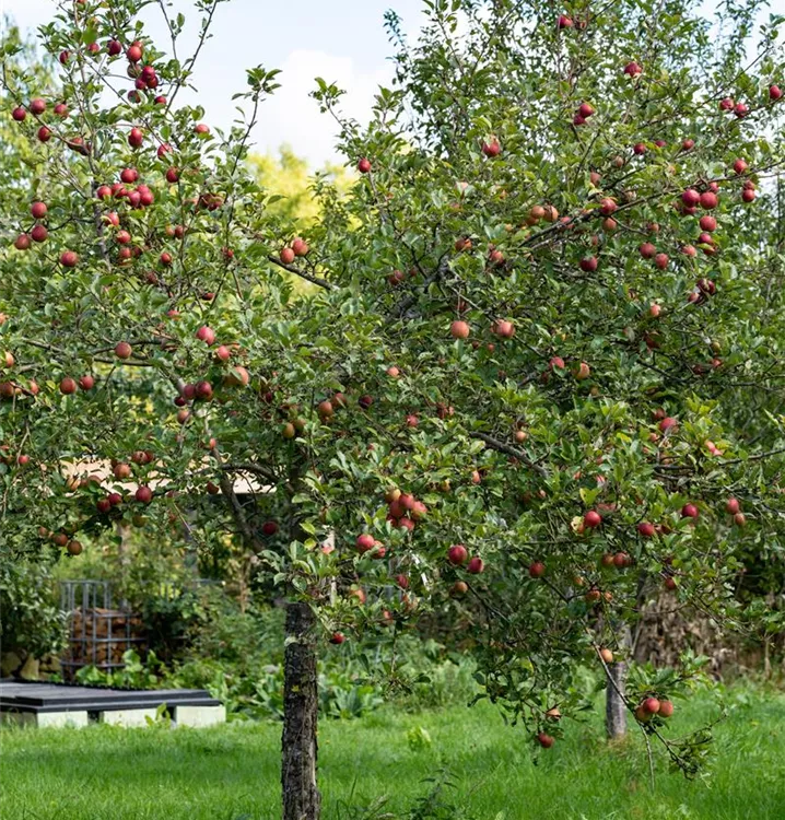 Winterapfel 'Purpurroter Cousinot' ist aufrecht und breit im Aufbau. In der Regel wächst er 20 - 40 cm pro Jahr.
