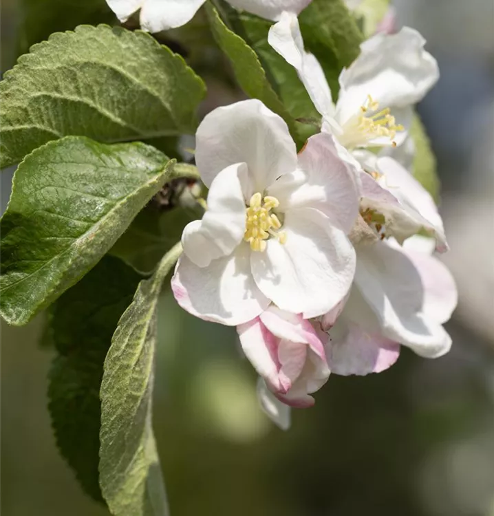 Malus domestica 'Jakob Lebel' bildet hellrosafarbene Blüten ab April.