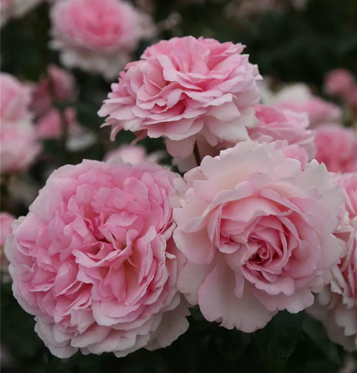 Die rosafarbenen Blüten sind starkgefüllt und erscheinen von Juni bis Oktober. Diese werden etwa 8 - 10 cm groß und sind stark duftend.