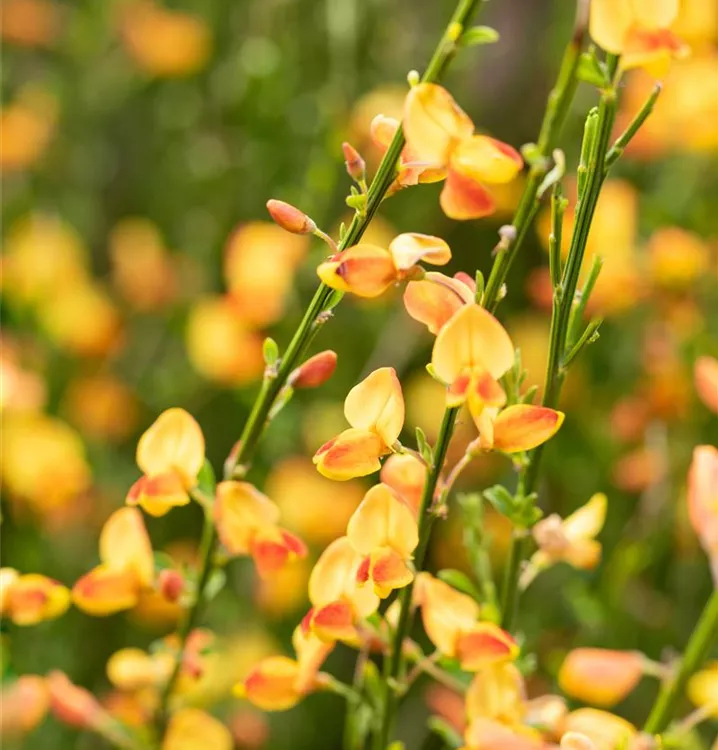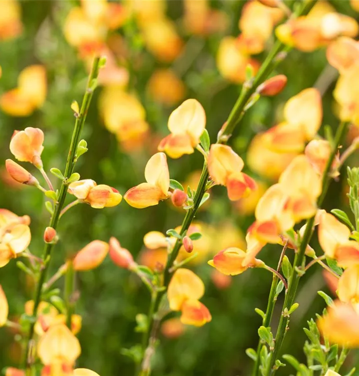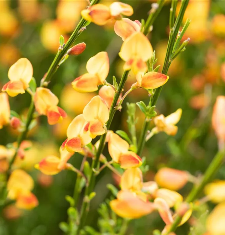 Die orangegelben, schmetterlingsförmigen Blüten erscheinen von Mai bis Juni. Diese sind angenehm duftend.