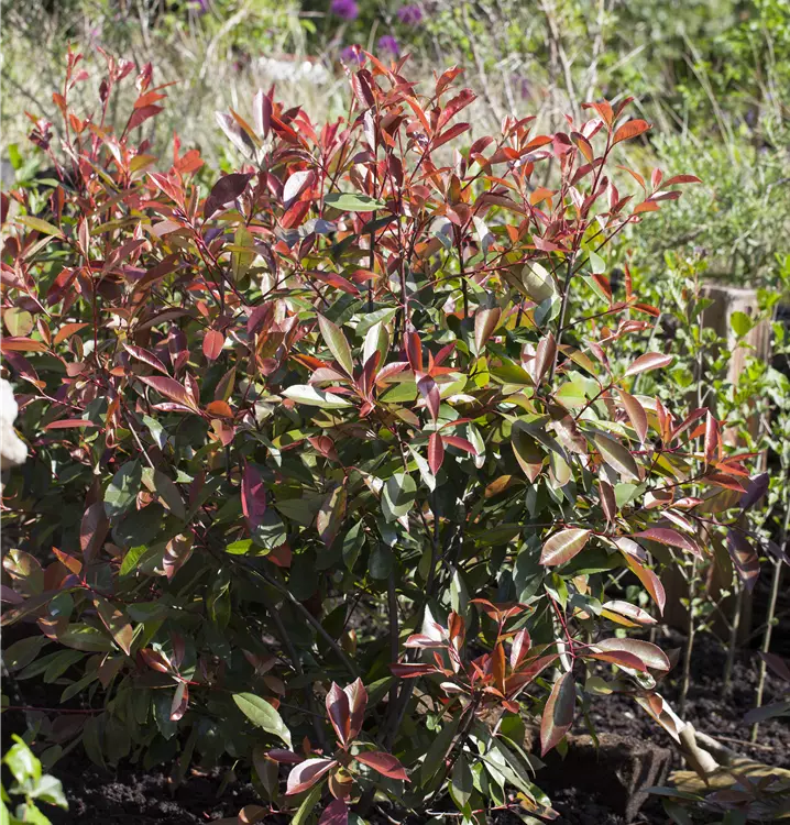 Photinia fraseri 'Red Light' ist ein Flachwurzler und bildet, je nach Boden, fein verzweigte Wurzeln.