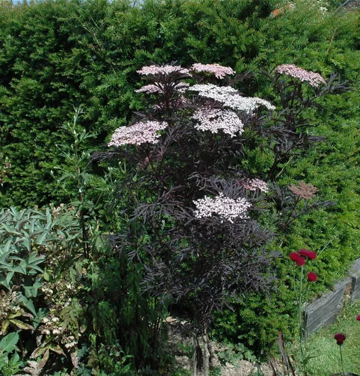 Der Schwarze Holunder 'Black Lace'(s) setzt schöne Akzente gemeinsam mit: