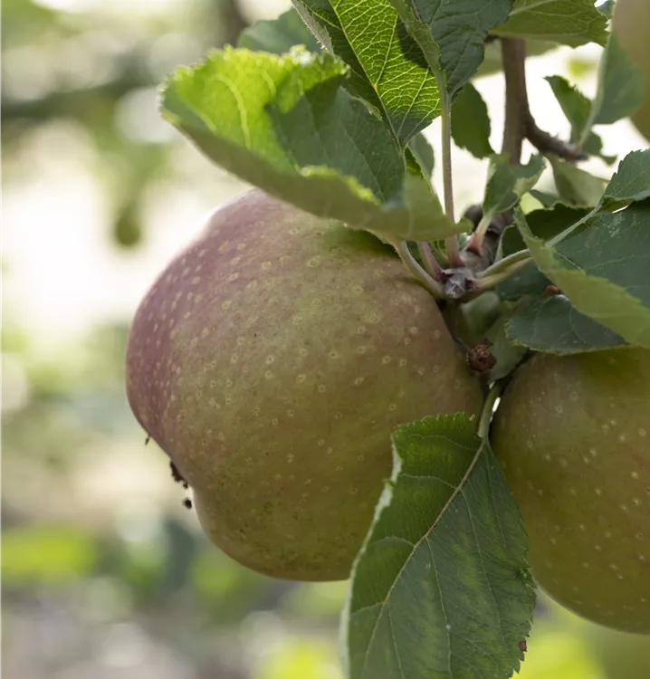 Der Winterapfel 'Roter Boskoop' besitzt große Früchte süßsauren Aromas, die über lange Zeiträume gelagert werden können.