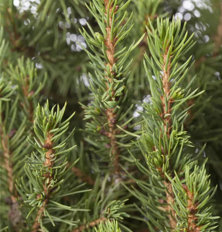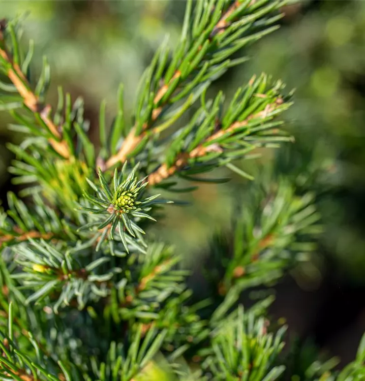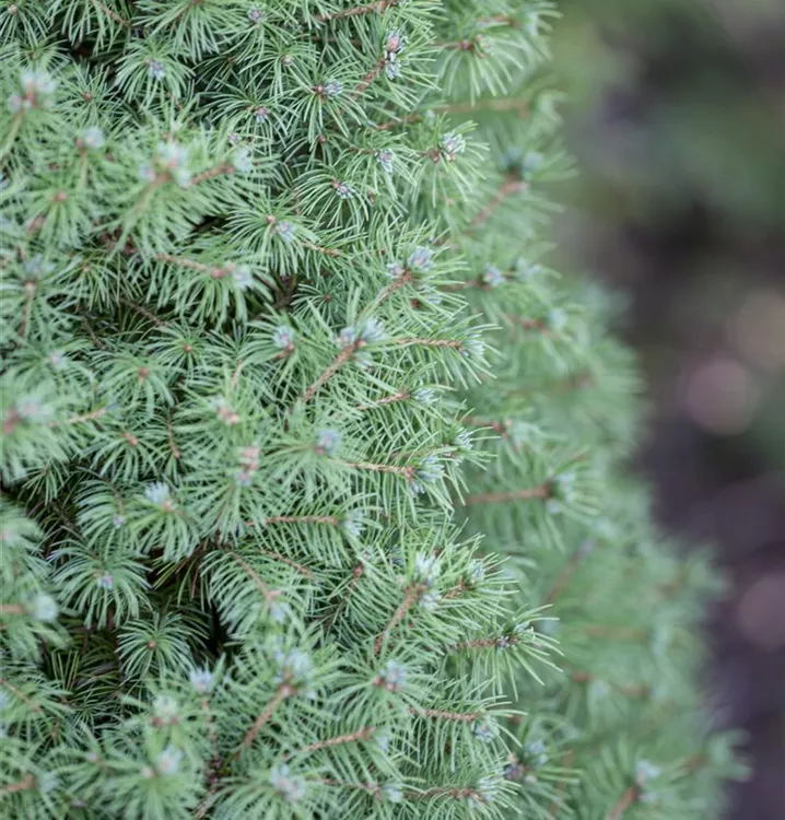 Die Zuckerhut-Fichte 'Conica' ist immergrün. Ihre Nadeln sind hellgrün, weich.