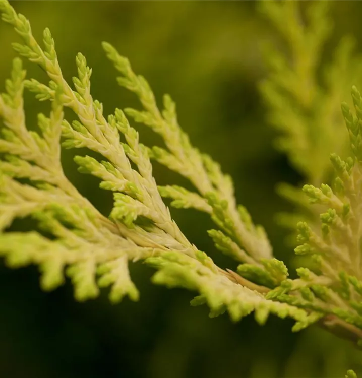 Die Leyland-Zypresse 'Gold Rider' ist immergrün. Ihre Nadeln sind goldgelb, schuppenförmig.