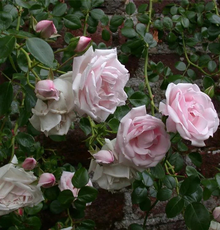 Rosa 'New Dawn' wächst kletternd und erreicht gewöhnlich eine Höhe von 2,5 - 3 m und wird bis zu 1,2 - 1,5 m breit.