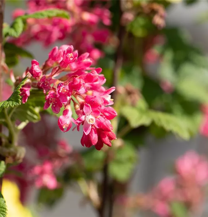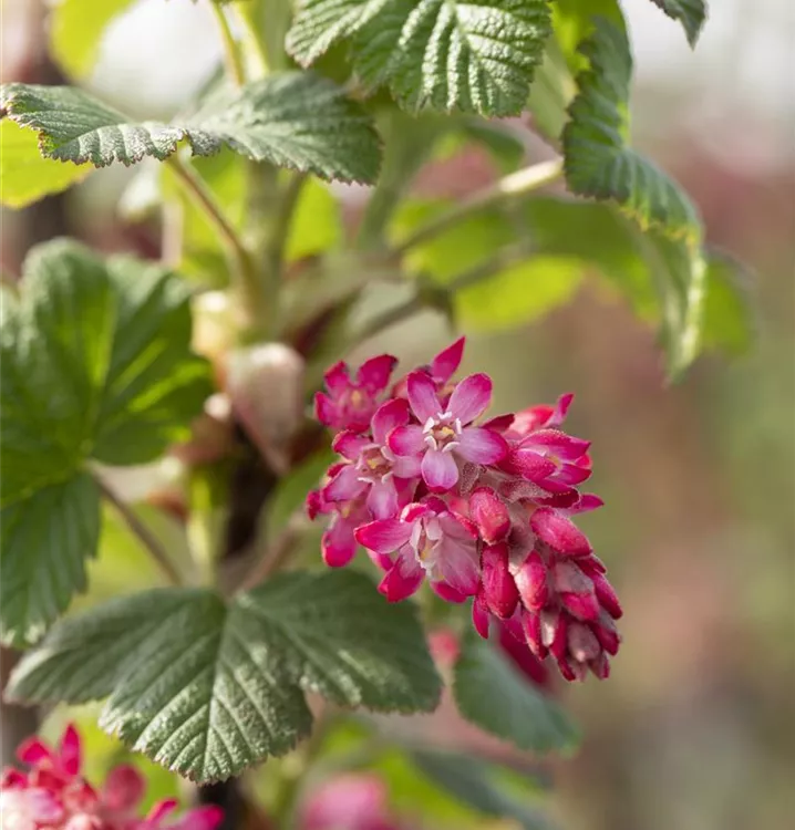 Die purpurroten Blüten der Blutjohannisbeere 'Atrorubens' erscheinen in Trauben von April bis Mai.