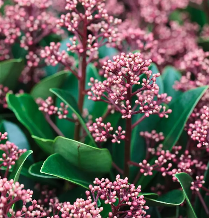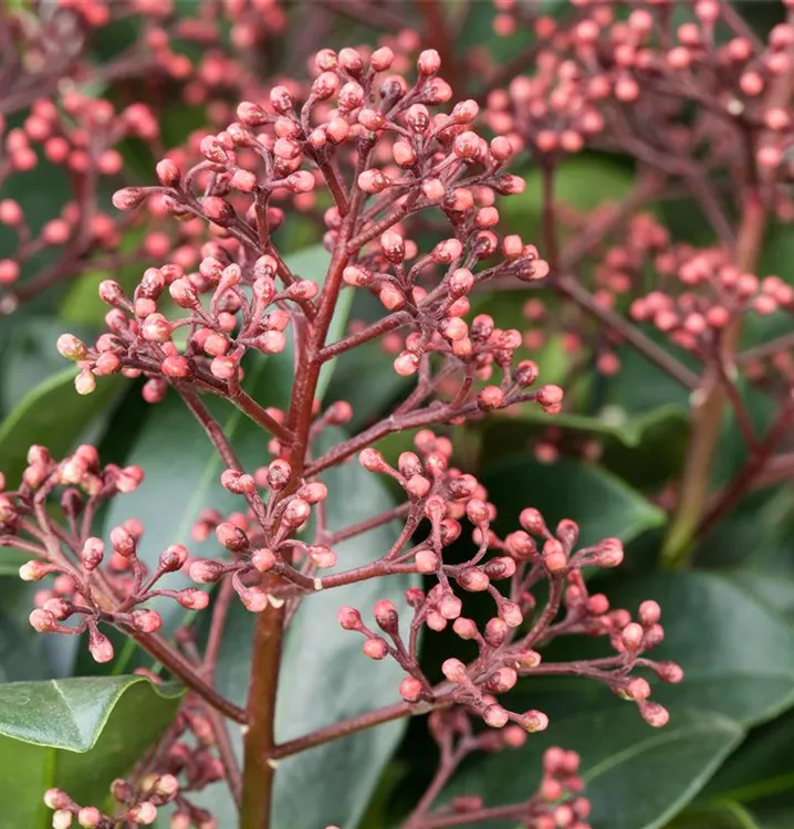 Skimmia japonica 'Rubella' ist ein Flachwurzler.