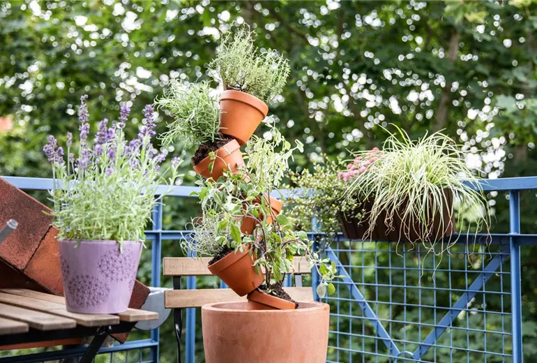 Auch hoch in der Luft gedeihen viele Blumen, Salate und Pflanzen prächtig. Blumenampeln können an der Decke des Balkons angebracht oder sogar an die stärkeren Äste eines Baumes im Hinterhof gehängt werden. Selbst im klassischen Blumenkasten gedeihen Kräuter und Salate, falls kein anderer Platz mehr vorhanden sein sollte. Wer noch alte Weinkisten zu Hause hat, kann aus diesen ein schickes Regal zaubern, in dem gerade mediterrane Kräuter besonders gut zur Geltung kommen. Für den Kartoffelanbau gibt es praktische Pflanztöpfe, die seitlich geöffnet werden können, um die Kartoffelernte zu erleichtern. Eine tolle Kombination aus Europalette und Rankhilfe bietet ein Wandpaneel, das ganz einfach ohne Bohren an der Balkonwand befestigt werden kann, ohne diese zu beschädigen. So macht Urban Gardening richtig Spaß!