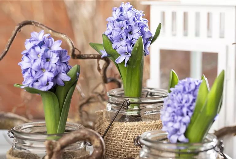 Mit ihren meist blauen oder violetten, glockenförmigen Blüten, die einen angenehm süßlichen Duft verbreiten, gehören Hyazinthen ebenfalls zu den beliebtesten Pflanzen zu Ostern. Ihre Blüten erscheinen von April bis Mai und passen optisch wunderbar zu weißen und rosafarbenen Tulpen und anderen Frühlingsblühern. Sie können sowohl im Blumenbeet als auch im Kübel oder Blumentopf gehalten werden und gelten als besonders pflegeleicht. Lediglich auf Staunässe reagieren diese Schönheiten empfindlich, ansonsten sind sie mit jeder Art von Erde zufrieden. Hyazinthenzwiebeln können in Gruppen gesetzt werden, wobei ein Pflanzabstand von ca. 10 Zentimetern eingehalten werden sollte. Die beste Pflanzzeit für Hyazinthenzwiebeln ist Ende Oktober bis Ende November. Wer rechtzeitig Hyazinthenzwiebeln setzt, wird von diesen Pflanzen im Frühling mit ihrer Blütenpracht belohnt.