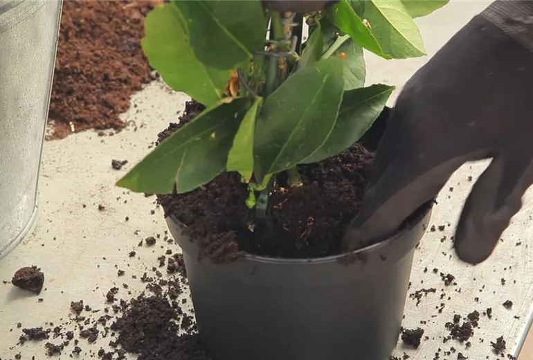 Die Erde sollte dem Citrus-Bäumchen eine ausreichende Standfestigkeit bieten.