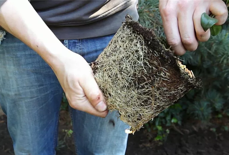 Wenn Sie den Wurzelballen leicht auflockern und etwas von der alten Erde entfernen, erleichtern Sie der Pflanze zusätzlich das schnelle Einwurzeln im Erdreich. Falls sich in dem Topf bereits Unkräuter angesiedelt haben, sollten Sie diese selbstverständlich entfernen.