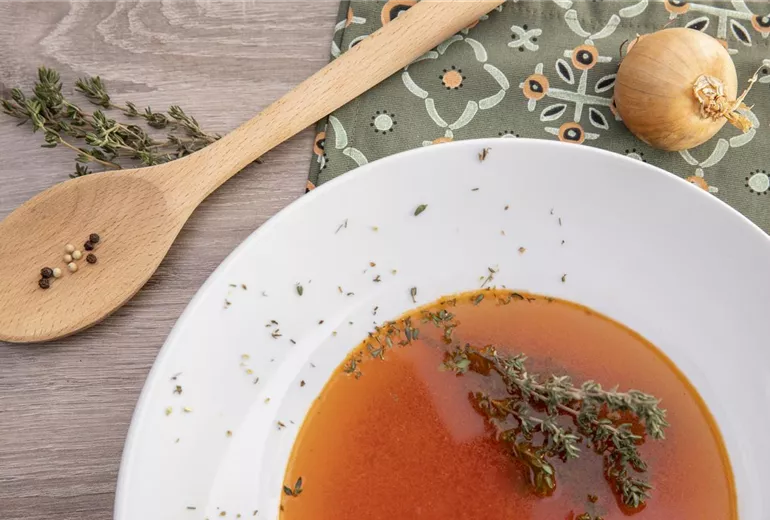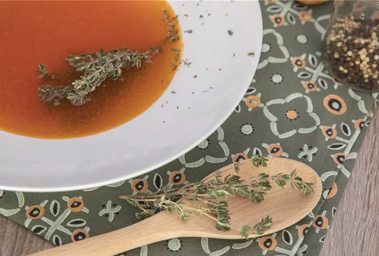 Thymian und Oregano gehören mittlerweile in jede Küche. Kein Wunder also, dass sie auch in einer kräftigen Tomatensuppe nicht fehlen dürfen. Denn was passt besser zu Tomaten, als frische und würzige Kräuter?