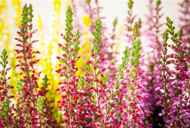 Man unterscheidet Heide in Sommer- und Winterheide. Eine wegen ihrer langen Blütezeit sehr beliebte Sorte der Sommerheide ist die Knospenblüherheide ( Calluna vulgaris ). Sie ist tatsächlich eine Mutation, die glücklicherweise von aufmerksamen Gärtnern entdeckt wurde. Da sie ihre Knospen nie öffnet, wird sie auch nicht von Insekten bestäubt. Das erklärt ihre ungewöhnlich lange Blütezeit und warum sie generell einfach unempfindlicher ist.