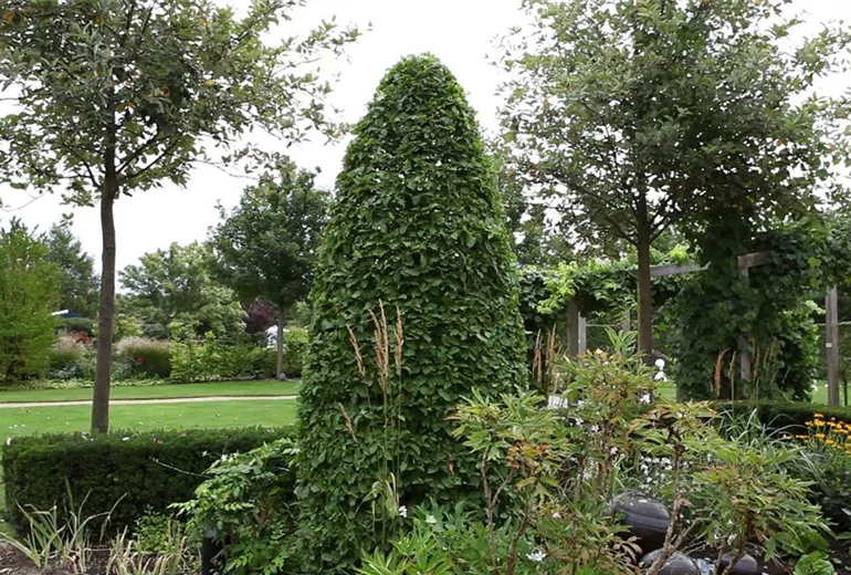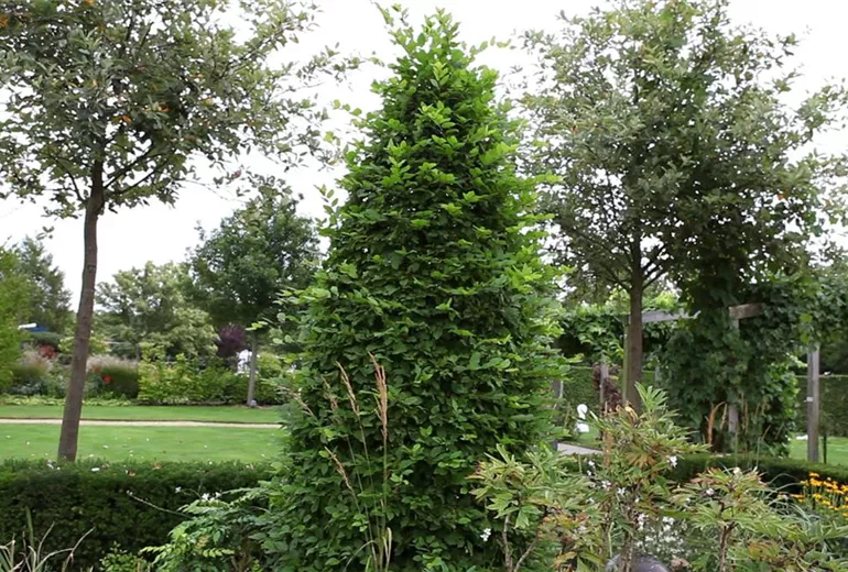 Die Säulenhainbuche, die eigentlich gar keine Buche ist, gehört zu den beliebtesten Solitärpflanzen. Sie stammt aus der Familie der Birkengewächse und unterscheidet sich von der einfachen Hainbuche durch ihre schlanke, kegelartige Form.