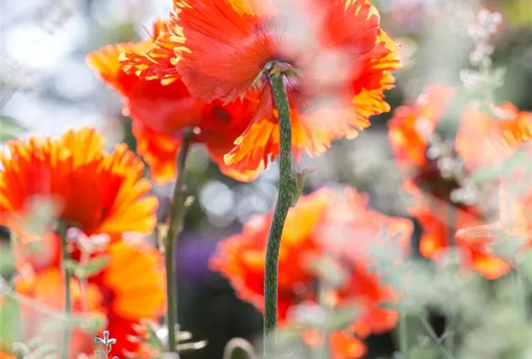 Die geschwungenen Blütenstängel und die zarten Blüten in Weiß, Gelb, Orange oder Rot sehen als Solisten in hohen, engen Vasen am schönsten aus. Bereits die ungeöffneten, flaumigen Knospen sind eine Zierde. Der Mohn hat trotz aller züchterischen Anstrengungen seine Natürlichkeit bewahrt und wurde so zum begehrten Objekt der Blumenkünstler.