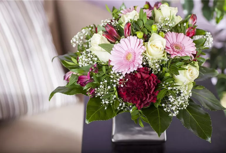 • Je enger und höher die Vase, desto weniger Blumen werden benötigt