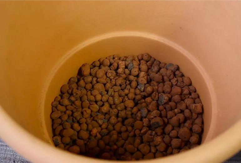 Wichtig ist beim Feigenbaum eine gute Drainage, um Staunässe zu vermeiden. Legen Sie dazu in das Abzugsloch des Pflanztopfes eine Tonscherbe. Schütten Sie darauf eine dicke Schicht aus Tonkugeln beziehungsweise Blähton.