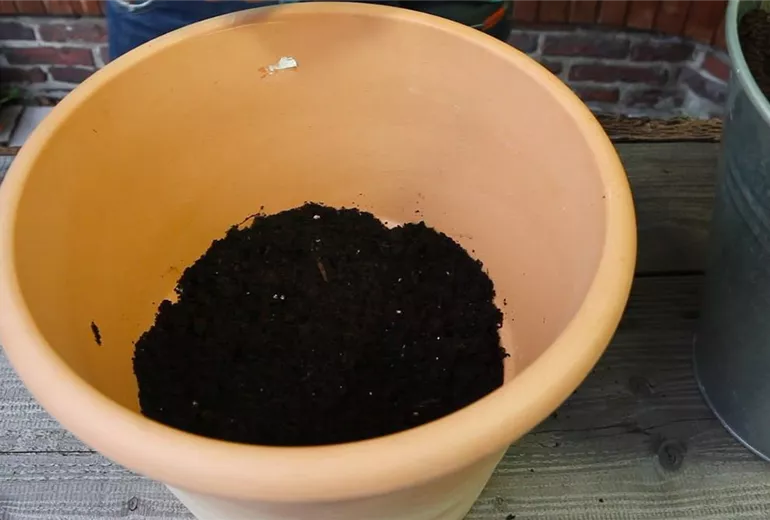 Die frisch eingefüllte Erde sollte etwas angedrückt werden, damit die Wurzeln gut in Kontakt mit dem neuen Substrat kommen können.