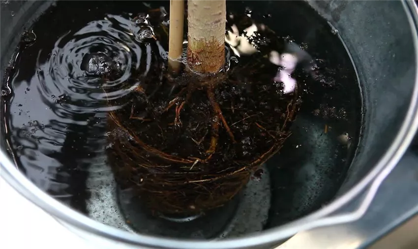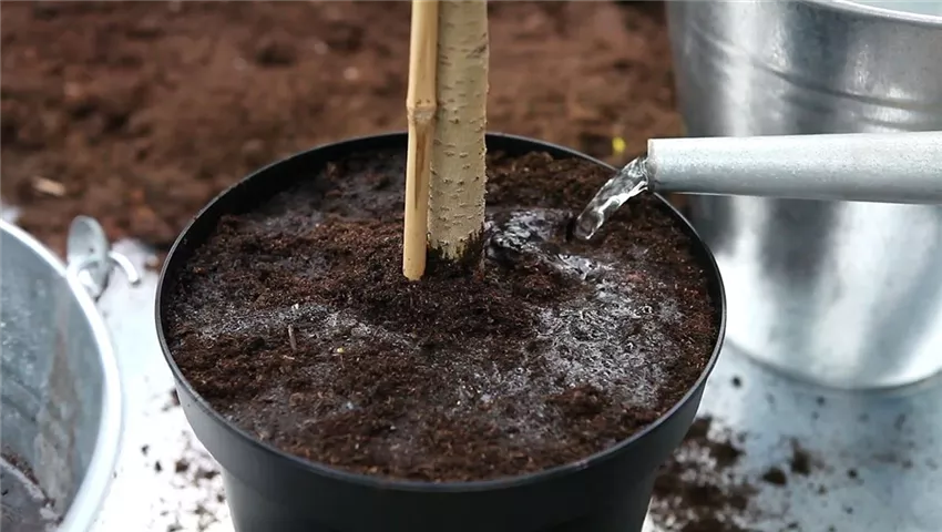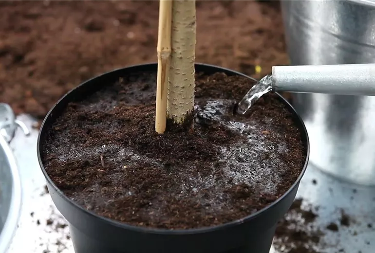 Ein gleichmäßiges Durchfeuchten des Ballens erreichen Sie am besten durch Wässern des Wurzelbereichs. So kann die Pflanze gestärkt neue Wurzeln bilden.