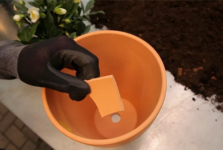 Wichtig ist ein Abzugsloch – abgedeckt mit einer Tonscherbe oder Ähnlichem.