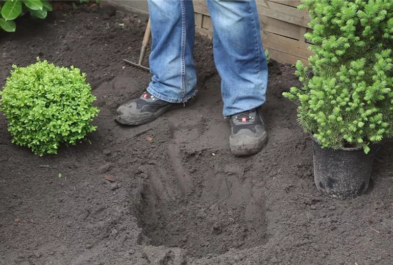 Je nachdem, welche Bodenverhältnisse Sie in Ihrem Garten vorfinden, sollten Sie nährstoffreiche Pflanzerde kaufen beziehungsweise den Erdaushub mit Kompost anreichern.