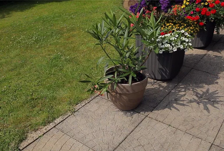 Oleander sind beliebte Kübel-Pflanzen für einen blütenreichen Terrassen-Sommer.