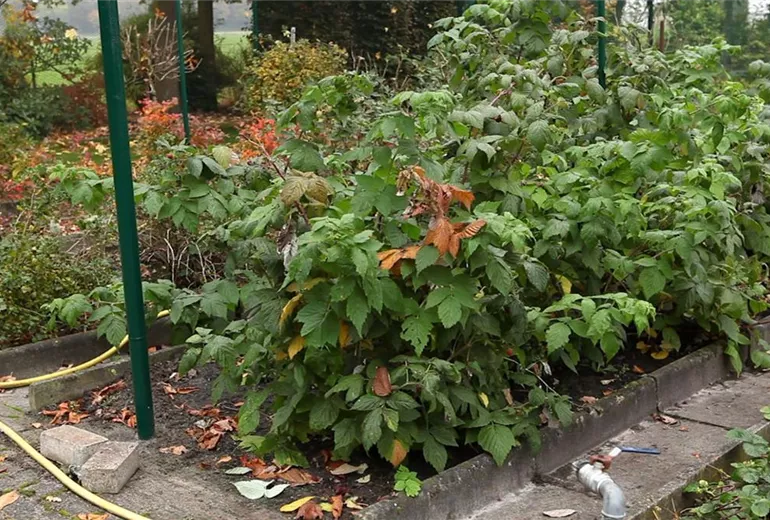 Himbeer-Pflanzen, die im Herbst Früchte tragen, bilden die leckeren Beeren an den diesjährigen Trieben, also an den neu gewachsenen.