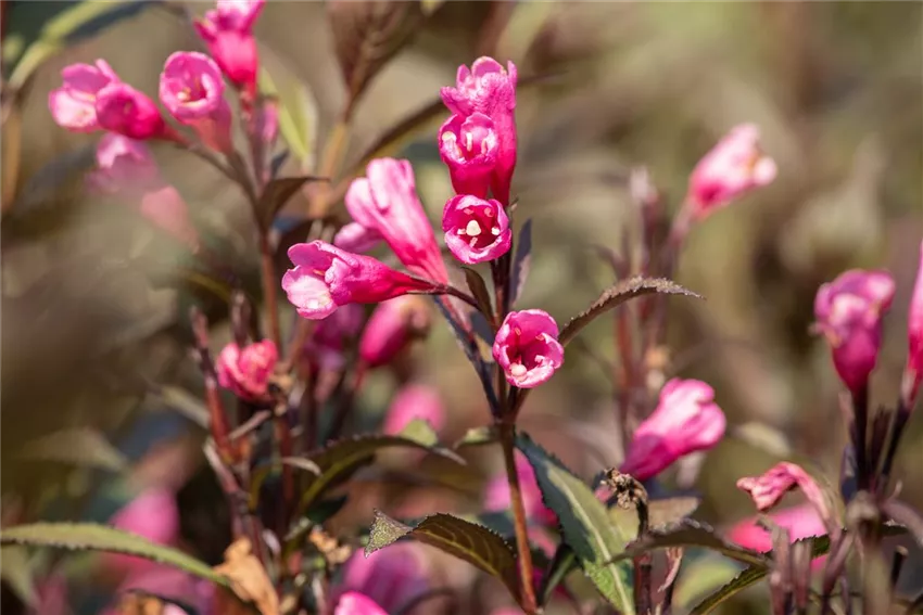Wer es etwas zierlicher mag, kann auch auf kleinwüchsigere Sorten, die weniger als einen Meter hoch werden und auch in Kübeln und Töpfen gehalten werden können zurückgreifen. Wer seinen Weigelien einen sonnigen Standort gönnt, kann ihnen besonders viele Blüten entlocken.